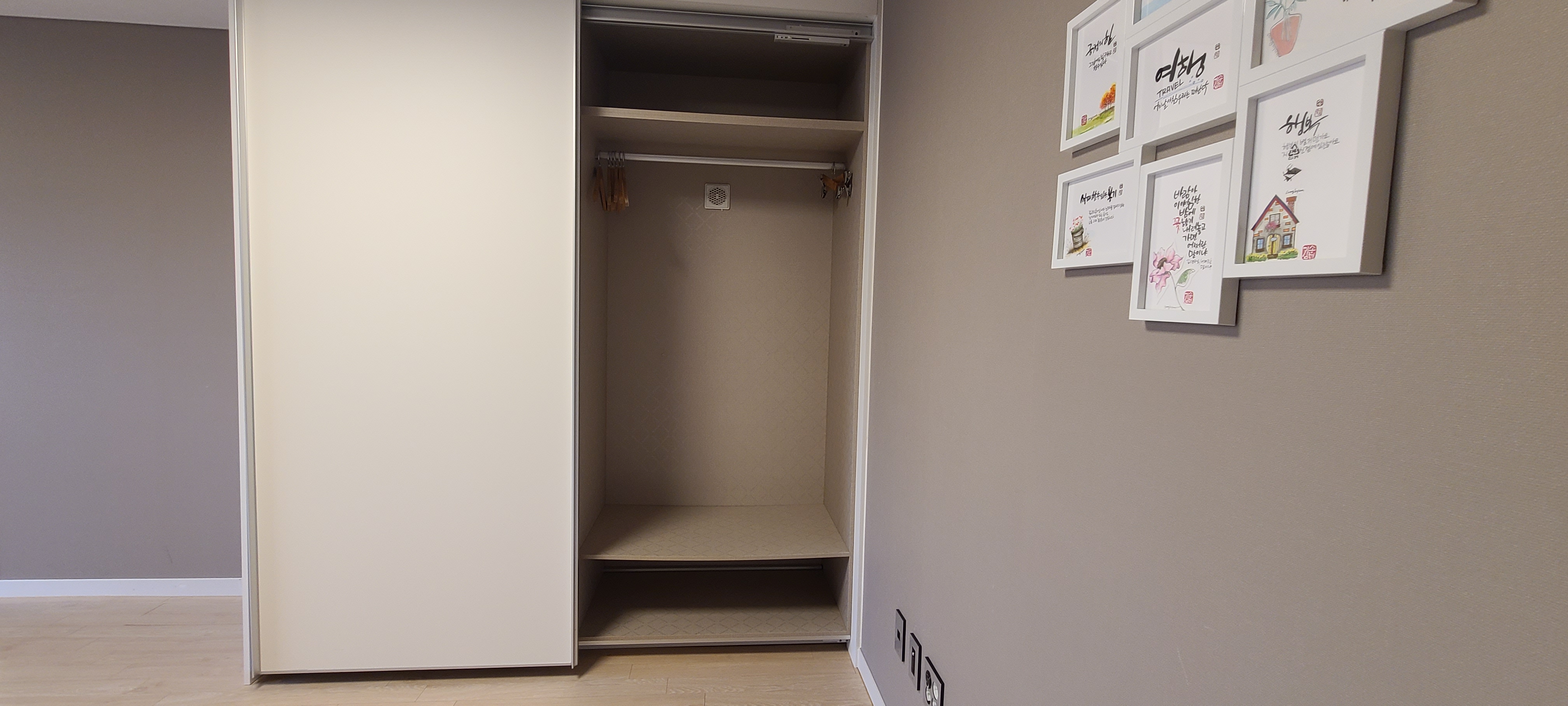 벽에 걸린 캘리그리파입니다. 직접 손수 그리신 느낌이 듭니다.