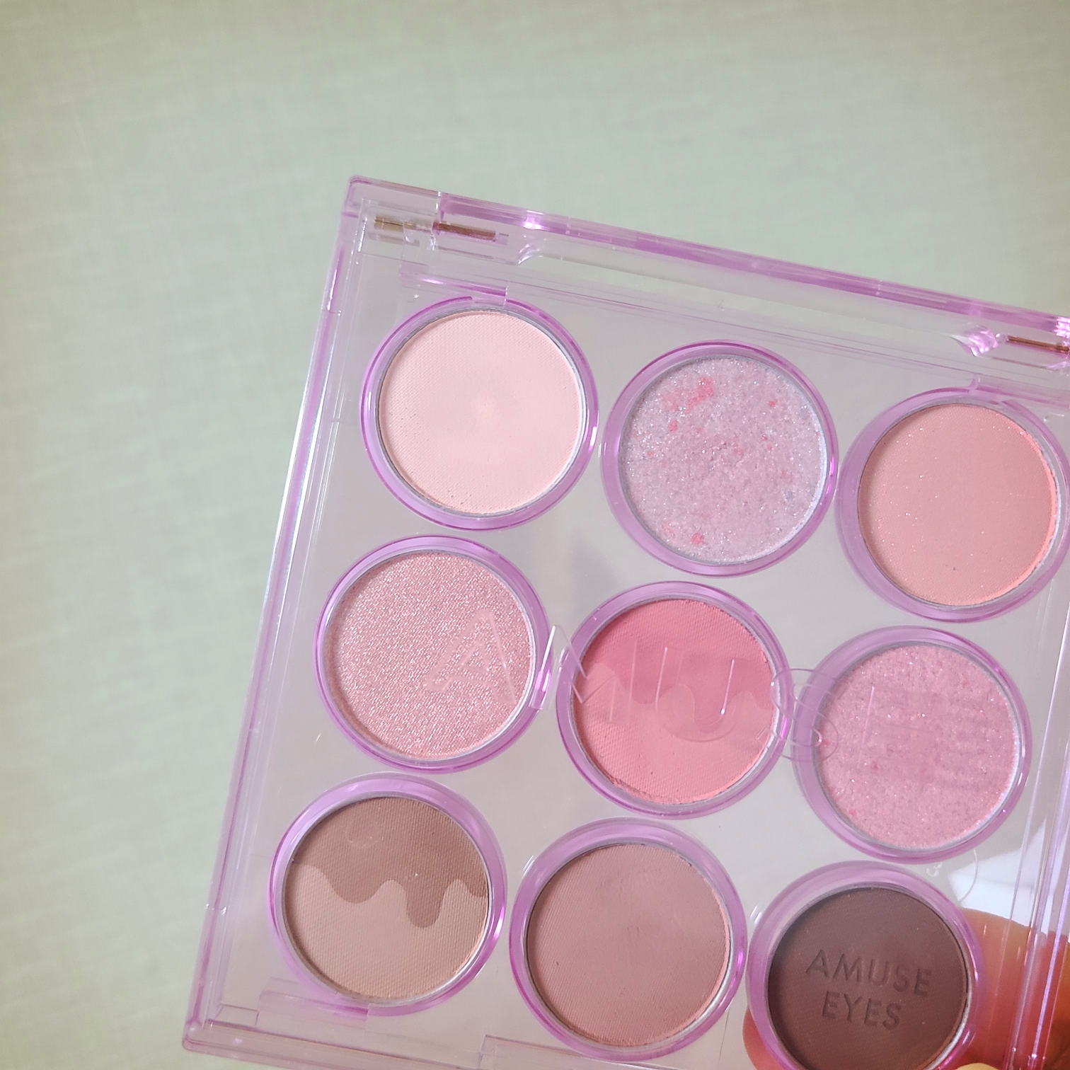 색상은 이렇다. 그런데 무려 3개의 섀도우가 글리터인데, 이거 나 다 쓸 수 있을까? 다른 아이섀도우 팔레트도 많았으나, 어뮤즈를 좋아해서 그냥 어뮤즈 중에서 골랐다. 가루 날림이 심하다는 평이 있지만, 그냥 저냥 쓸 만하다. 케이스가 예쁘다.