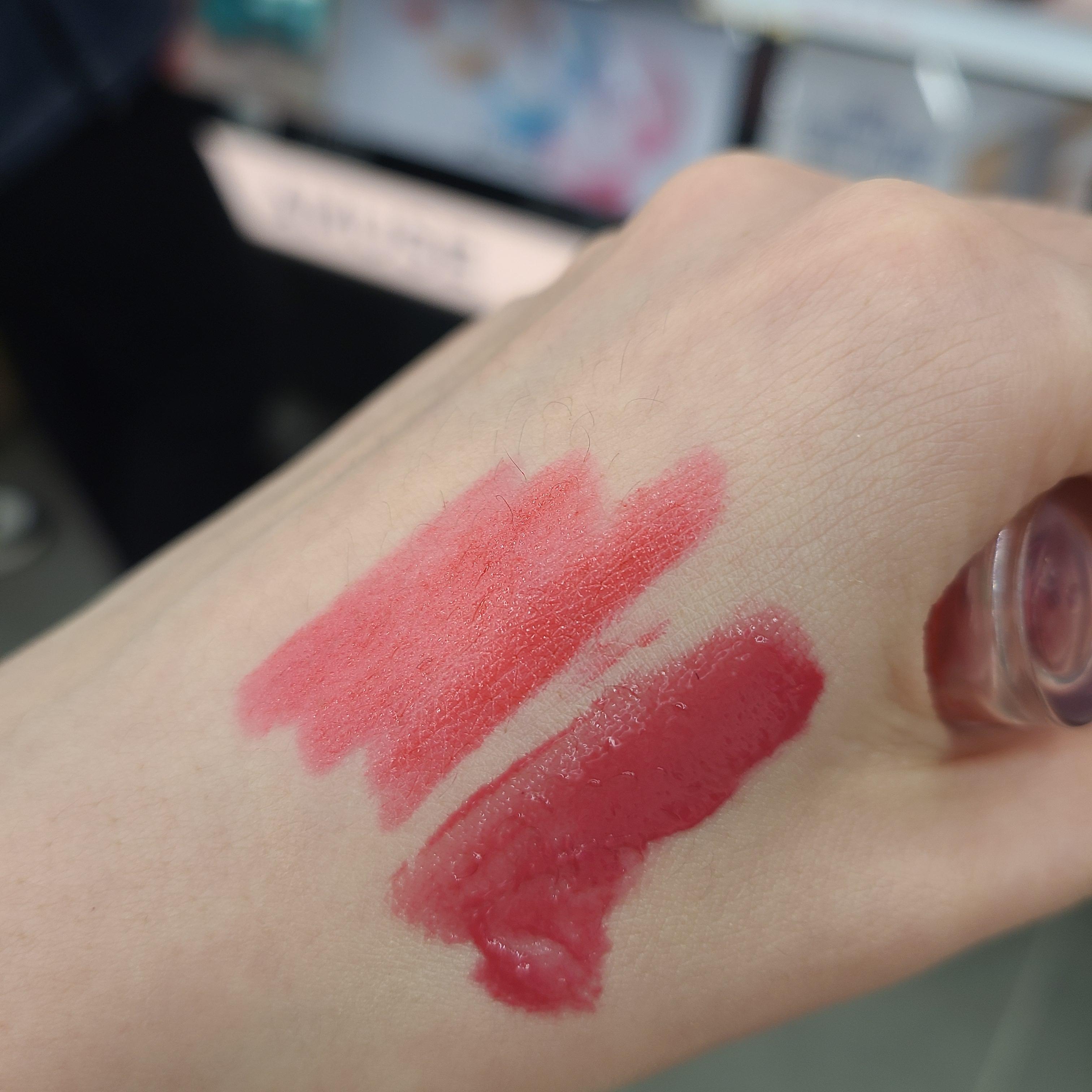 아래는 파우치에 있던 립과의 발색 비교이다. 위에 있는 립이 기존에 사용하고 있었던 제품이고, 그 아래가 장미 우유이다. 위에 있었던 제품은 쿨톤 추천이어서 다른 브랜드에서 샀던 것인데, 지금 사진으로 비교해 보니 굉장히 따뜻한 컬러다. 새로 사길 잘 했다.